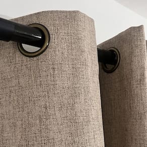 • Informações Adicionais: Tecido linho Rústico; Tecido Grosso; Lavável em Máquina; Acabamento alto padrão; Recomendado para varão 2 metros; Cortina Blacout;