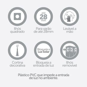 Conteúdo da Embalagem: - 01 Cortina blackout PVC 2,80m x 1,60m. Ean: 7898271480842