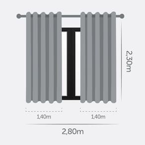 R: A Cortina Blackout 2,80X2,30 Corta 100% A Luz Para Sala Cinza possui o tamanho de 2,80m x 2,30m.