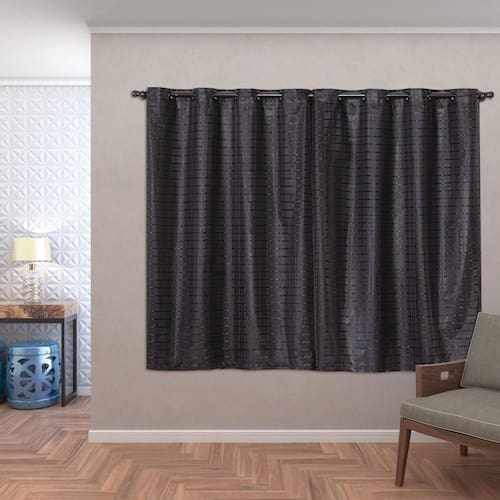 Cortina Blackout Pvc Com Tecido Voil Xadrez 2,80 M X 1,60 M - Preto