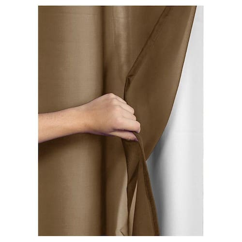 A cortina possuí duas partes, o blackout de pvc e por cima o tecido voil. O pvc é um tipo de plástico especialmente feito para cortinas, possuí uma textura na frente para imitar um tecido e é da cor desejada. A parte de trás do pvc é da cor cinza, conforme mostramos na foto explicativa, é a parte cinza que faz vedar 100 % a luz. Por cima do pvc descrito anteriormente, a cortina possuí um tecido fino, o voil, costurado na parte superior do blackout, dando uma estética excelente para a cortina.