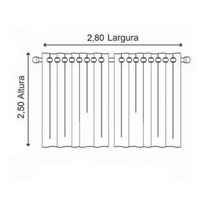 Contém: 01 cortina 2,80 mts x 2,50 mts no total, sendo: 02 partes de 1,40 mts x 2,50 mts com 16 ilhoses no total Indicada para varão de até 2 mts