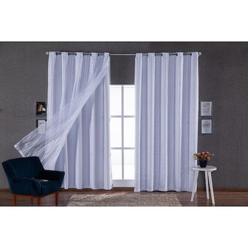 Cortina blecaute com voil sala quarto 4 metros Cor: branco voil xadrez Cortina tecido blackout corta luz + voil 4 metros