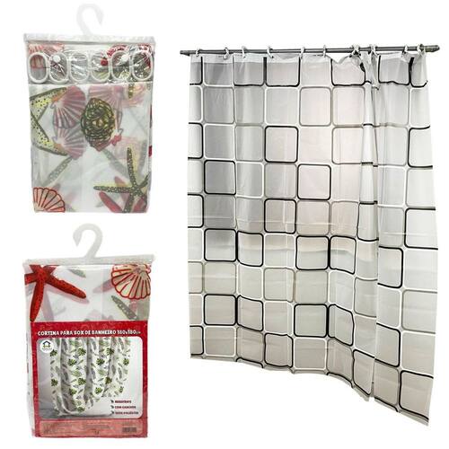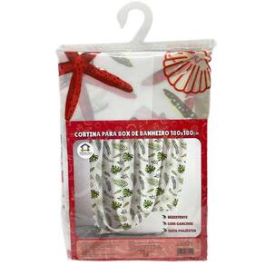 1 cortina para box de banheiro 100% poliéster 180cm 12 ganchos