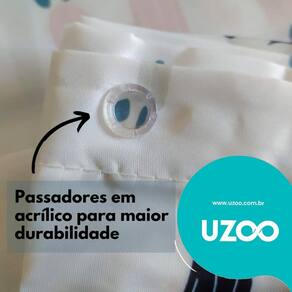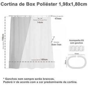 Feita com poliéster, a cortina é durável e capaz de resistir ao ambiente úmido do banheiro. Além disso, a higienização é igualmente descomplicada, podendo ser facilmente retirada para limpá-la.