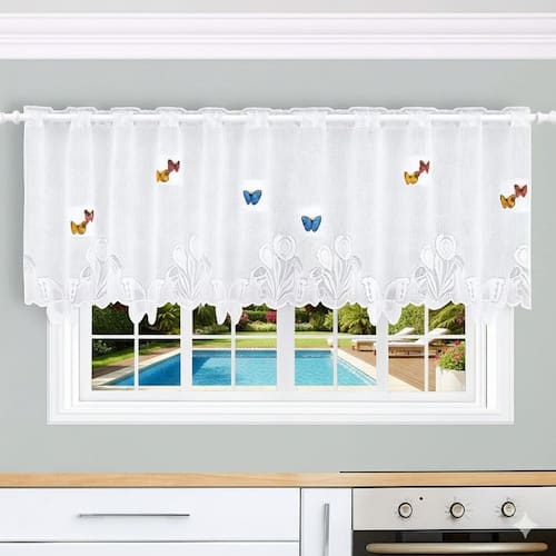 Cortina Bando Borboleta De Renda Cascata Cozinha 0,75 Alt X2,60 larg, a melhor renda você vai amar, produto autêntico e Novo