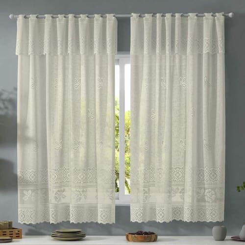 Cortina Cozinha 2,00 X 1,20M Renda Creme Rosas