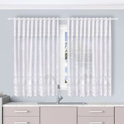 DescriçãoCortina de Renda Jacquard com bandô. Modelo para usar em varão. Se procura uma cortina para colocar na cozinha, esta é a ideal! Modelo liso com desenho neutro em seu comprimento com pequenas cerejinhas, e na barra o desenho de frutas dão um charme especial. INFORMAÇÕES- Contém: 01 Cortina para cozinha em renda para varão com bandô- Tamanho: Cortina - 2,00 m largura x 1,30 m altura x 0,30m bandô- Tamanho recomendado do varão - 2,00 m- Composição: 100% poliéster- OBS.: NÃO ACOMPANHA VARÃOVERIFIQUE AS MEDIDAS ANTES DA COMPRA Marca: Beija Flor Marca: Beija Flor Marca: Beija Flor