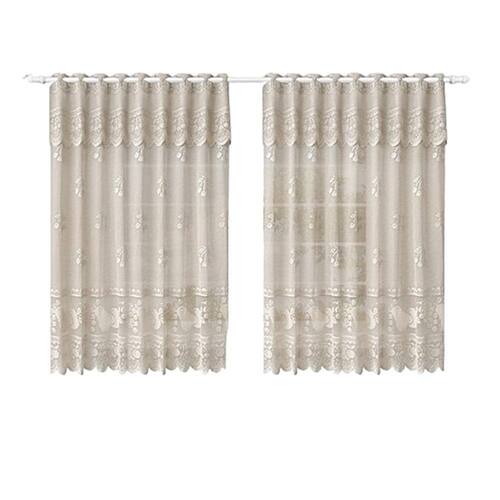 - contém: 01 cortina para cozinha em renda para varão com bandô - tamanho: cortina - 2,00 m largura x 1,30 m altura x 0,30m bandô - tamanho recomendado do varão - 2,00 m - composição: 100% poliéster