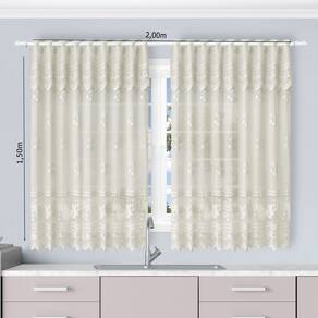 DescriçãoCortina de Renda Jacquard com bandô. Modelo para usar em varão. Se procura uma cortina para colocar na cozinha, esta é a ideal! Modelo liso com desenho neutro em seu comprimento com pequenas cerejinhas, e na barra o desenho de frutas dão um charme especial. INFORMAÇÕES- Contém: 01 Cortina para cozinha em renda para varão com bandô- Tamanho: Cortina - 2,00 m largura x 1,50 m altura x 0,30m bandô- Tamanho recomendado do varão - 2,00 m- Composição: 100% poliéster- OBS.: NÃO ACOMPANHA VARÃOVERIFIQUE AS MEDIDAS ANTES DA COMPRA Marca: Beija Flor Marca: Beija Flor Marca: Beija Flor