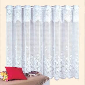 Feita em renda, a cortina possui um bandô com 0,30cm de altura, adicionando um toque de charme e requinte ao produto. A composição é 100% poliéster, garantindo durabilidade e resistência ao produto.