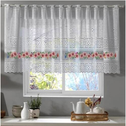 Cortina Cozinha Valência 200cmx150cmx30cm Interlar Cor: Branca Hibisco Informações do Produto Cortina de Renda Valencia - Interlar Deixe sua cozinha mais elegante com as cortinas de renda valência, confeccionadas com renda trabalhada, , vai deixar a sua Copa Cozinha ainda mais linda, sofistica e com toque de leveza. Características: - Tecido de renda - Cortina com abertura central - Possui Bandô Especificações Técnicas: Tamanho: 2,00x1,50m Indicado para varão de até: 1,50m Consumo Total do Tecido: 2,00m - Dividida em 2 partes de 1,00m Marca: Interlar Composição: 100% Poliéster Contém: 01 Cortina com bandô Imagem meramente ilustrativa, acessórios não acompanham o produto. Observações: Considere as medidas e formatos especificados na descrição do produto. O consumo de tecido refere se a cortina totalmente esticada. Seguir as instruções de conservação que acompanha a etiqueta do produto. Não acompanha suporte, trilho ou varão. Fotos ilustrativas. Marca: Não Informado