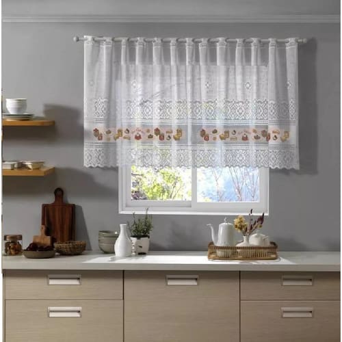 Cortina Cozinha Valência 200cmx150cmx30cm Interlar Cor: Branca Picnic Informações do Produto Cortina de Renda Valencia - Interlar Deixe sua cozinha mais elegante com as cortinas de renda valência, confeccionadas com renda trabalhada, , vai deixar a sua Copa Cozinha ainda mais linda, sofistica e com toque de leveza. Características: - Tecido de renda - Cortina com abertura central - Possui Bandô Especificações Técnicas: Tamanho: 2,00x1,50m Indicado para varão de até: 1,50m Consumo Total do Tecido: 2,00m - Dividida em 2 partes de 1,00m Marca: Interlar Composição: 100% Poliéster Contém: 01 Cortina com bandô Imagem meramente ilustrativa, acessórios não acompanham o produto. Observações: Considere as medidas e formatos especificados na descrição do produto. O consumo de tecido refere se a cortina totalmente esticada. Seguir as instruções de conservação que acompanha a etiqueta do produto. Não acompanha suporte, trilho ou varão. Fotos ilustrativas. Marca: Não Informado