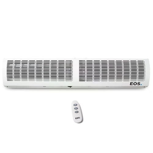 A Cortina de Ar EOS tem a função de separar a temperatura ambiente exterior da temperatura interior. Desenvolvido especialmente para áreas de comércio que são climatizadas, mas precisam manter as portas abertas, fornecendo uma maior economia de energia ao mesmo tempo em que mantém o conforto térmico do local. A Cortina de Ar EOS é instalada sobre a porta, a uma distância de até 3 metros acima do piso, criando assim uma barreira de vento que garante uma isolação térmica, impedindo que o ar refrigerado escape. Além disso, a Cortina de Ar EOS evita a entrada de poeira, fumaça, insetos e outras partículas. A correta utilização das cortinas de ar EOS aumenta a vida útil do equipamento de refrigeração (como ar condicionado e câmaras frigoríficas) gerando uma economia elétrica de até 35%. Seu controle remoto facilita a programação e alteração de velocidade e ligar e desligar o produto, mesmo se ele for instalado em grandes alturas ou em locais inacessíveis.