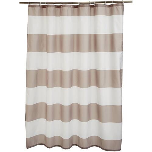 Cortina de chuveiro de banheiro de tecido resistente à água Amazon Basics com ilhós e ganchos, lavável à máquina, 72" x 72", grande marrom claro, bege