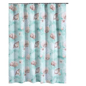 Cortina de chuveiro Benjara Logan de 72 polegadas, estampa de conchas em azul claro costeiro