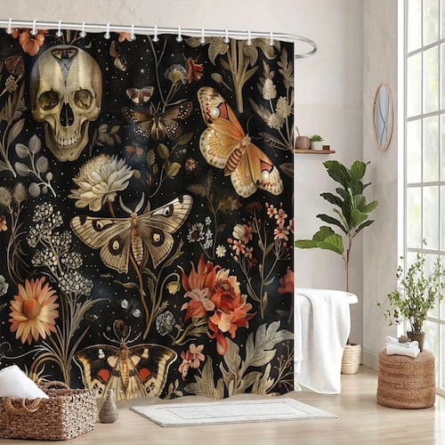 Tamanho da cortina de chuveiro: 180* 200 cm Peso: 410 g Material: poliéster Cor: igual à primeira foto Pacote: 1 x cortina de chuveiro Design gótico exclusivo: apresenta uma mistura impressionante de imagens florais, mariposas e caveiras, perfeita para quem aprecia a estética escura, vintage e gótica na decoração do banheiro. Material impermeável de alta qualidade: feita de poliéster durável, esta cortina de chuveiro é à prova d'água, lavável à máquina e de secagem rápida, tornando-a prática para o uso diário no banheiro. Estilo gótico versátil: adiciona uma estética ousada e sombria ao seu banheiro, perfeita para banheiros temáticos góticos, vintage ou inspirados na natureza, criando uma atmosfera única e temperamental. Fácil de instalar: inclui 12 ganchos para facilitar a instalação em qualquer haste de chuveiro padrão, proporcionando uma configuração descomplicada para seu banheiro. Durável e duradoura: feita de poliéster de alta qualidade, esta cortina de chuveiro é feita para durar, mantendo sua beleza e funcionalidade ao longo do tempo com o mínimo de manutenção.