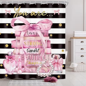 Esta cortina de chuveiro de alta qualidade é projetada em laços e livros, feita de tecido de poliéster à prova d'água, o material é ecológico. Material e tamanho: Tecido impermeável de poliéster, 183 cm de altura x 152 cm de largura. Design: laço e livros O que está incluído: uma cortina de chuveiro e pacote com 12 ganchos de chuveiro de plástico Função: impermeável, ecológico. Manutenção: Lavável na máquina em água fria, secar em temperatura baixa. Detalhes: Material: Poliéster Padrão: laço e livros Tamanho: 152 x 182 cm A (polegadas) Peso: 300 g O que está incluído: um painel de cortina de chuveiro, pacote com 12 ganchos de chuveiro de plástico Aviso: ? Todas as dimensões são medidas manualmente com desvio (variação) de 1 a 3 mm. ? O item pode ser um pouco diferente da imagem devido à iluminação e à exibição do seu monitor. - ?Material e tamanho?: Tecido de poliéster, 183 cm de comprimento x 152 cm de largura. - ?Design?: Tema da moda, estampa de laço e livros, moda. - ?O que está incluído?: Uma cortina de chuveiro e 12 ganchos de plástico para chuveiro. - ?Função?: Decoração de casa de banho e ecológica. - ?Manutenção?: Lavável na máquina em água fria, secar em temperatura baixa.