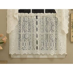 Sweet Home Collection Cortina de cozinha floral de renda pesada estilo velho mundo, camada de 61 cm, creme Hopewell - 24 níveis: 2x - 24 altura x 29 largura cada - 58 largura total, importado - Tecido: 100% poliéster - Cor: creme - Lavar à máquina com água fria no ciclo delicado. Não usar alvejante. Secar no varal. Passar a ferro quente se necessário