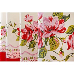 Cortina De Cozinha Em Tecido Linhão 2,00m x 1,20m Floral Vermelho Cortina Gourmet Ibitinga Decora