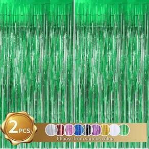 1. Cortina de franja de folha verde metálica de 2 pacotes