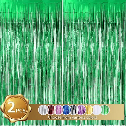 - Cor: o conjunto de cortinas com franjas é verde; elas são brilhantes e brilham sob a luz (não incluídas), boas decorações para suas festas incríveis.