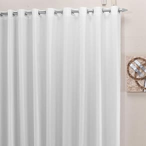 Cortina Blackout é ideal para controlar a claridade, bloquear a vista, embelezar a decoração do ambiente e manter a temperatura. Medidas Prontas: Largura 4,00m x Altura 2,50m Dividida em 2 partes de 2,00m x 2,50m Tecido: Voil com Forro Blackout / 100% Poliéster Cor: Branco Bloqueia em torno de 80% da Luz Acabamento feito na Bainha Ilhós Cromado, indicado para Varão de 28mm Cortina ideal para Varão de até 2,5m Não acompanha o Varão Atenção: essa cortina não é em PVC, e sim Tecido 100% Poliéster Marca: Confeccoes Elba