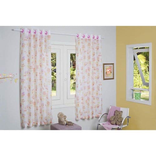 Cortina em Voil Estampado e Forro Poliéster com Ilhós para Varão.