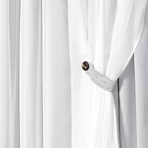 Cortina para varão simples de até 3 metros Dividida em 2 partes Varão vendido separadamente Cortina com ilhóses Acompanha as abraçadeiras