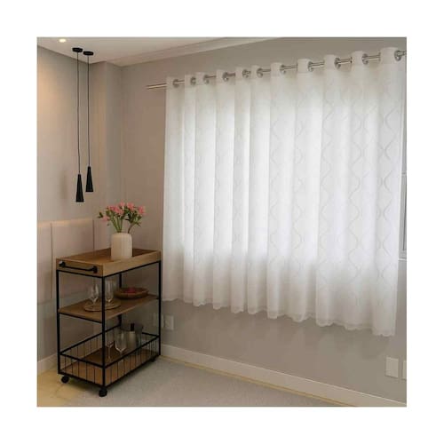 Apresentamos a Cortina Duplex Bordada, a verdadeira definição de sofisticação e romantismo para o seu espaço. Seu design suave e delicado, combinado com detalhes de bordados em forma de ramos por todo o voil, cria uma atmosfera encantadora em qualquer ambiente. Esta cortina é a escolha perfeita para quem busca um toque de romance sem renunciar à sofisticação. Apesar de sua leveza, ela oferece privacidade, graças ao forro em microfibra que a acompanha. Com 2 folhas de 1,50m, totalizando uma impressionante largura de 3,00m e 1,70m de altura, esta cortina é ideal para varões de até 1,50m de largura e contém 28 ilhoses cromados garantindo durabilidade e facilidade na instalação.