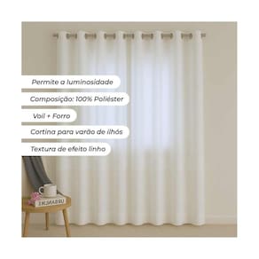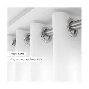 Detalhes sofisticados: Inclui ilhoses cromados, bainhas laterais de 2,00cm e barra inferior de 5,00cm, além de um barrado de 5cm, posicionado a 40cm da barra inferior, agregando um toque refinado à sua decoração.