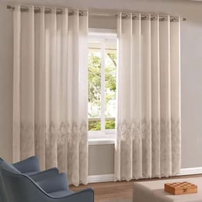 Acabamento: Com bainha lateral e um barrado de 60cm com bordado de flores e barra ondulada, essa cortina tem um visual incrível e sofisticado. O acabamento ainda inclui costuras, bainhas e detalhes, deve ser cuidadosamente executado. Uma boa qualidade de acabamento garante que a cortina tenha uma aparência elegante e profissional.