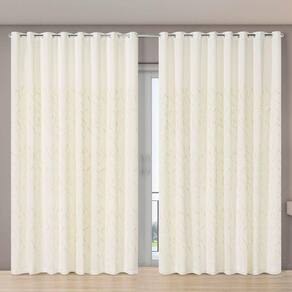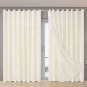 Cortina Forro Microfibra Voil Gaze Bordado 2,70 X 2,30 100% Poliéster - Bege Cortina Dual Forro Microfibra com Voil Gaze Bordado Leaves 2,70 m largura (esticado) x 2,30 m altura As Cortinas da Linha Dual da EDDI Casa é ideal para ambientes que necessitam receber luminosidade sem abrir mão da privacidade, garantida pelo forro de microfibra.