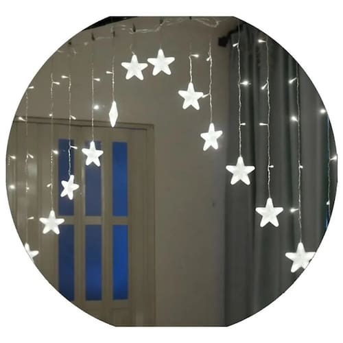 Cortina de casamento LED Garland Lights Outdoor Lights Cortina LED. Cor azul, branco, multicolorido. Modelo: Piramide. Excelente para decoração de Natal, eventos, festas e muito mais! Design moderno para dar elegância. Ele pode ser utilizado ao ar livre. Não gera risco de incêndio. Super flexível. Tensão de entrada: 220v. Tensão de saída: 12v. Caixa de voltagem incluída. Design de estrelas grandes e pequenas. Distância total da cortina: 3 metros, aproximadamente. Quantidade de luzes: 136. Conexão de tensão para unir mais cortinas Conteúdo do pacote: 1 x Cortina de estrelas de Natal Luzes de Natal de 3 m