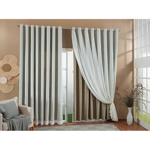 Cortina Gaze De Linho Forro Blackout 7,00X2,60M Sala E Quarto Avelã/Marfim