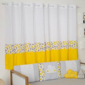 Cortina Infantil Nuvem 2,00 Metros Para Quarto Bebe Amarelo Cortina nuvenzinha 2.00mts 01 - cortina com 2 partes de 1,50mts x 1,70mts Composição : Tecido estampado : 100% algodão Tecido liso : 100% poliéster Não acompanha varão Obs: cortina para varão simples , toda de ilhós para facilitar o manuseio da peça , tanto para instalação qto lavagem . Produto de extrema qualidade , com um lindo designer , para o quarto do seu bebê . Ean: 7100000065825