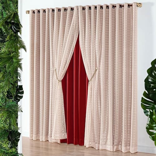 Cortina Iris 3 Metros Semi Blackout Sala Quarto Para Varão - Vermelha Cortina iris 3 metros semi blackout sala quarto para varão Cortina de linha nobre - tecido e acabamentos de alta qualidade Utilizamos matérias-prima de excelente qualidade que resistem à processo de lavagem, mantendo a beleza e durabilidade do produto. Contém na embalagem: 01 cortina 3,00m largura x 2,50m altura - tecido esticado 5,40m dividida em duas partes Acompanha abraçadeiras Composição: Tecido: 100% poliester Não inclui o varão Atenção: a foto apresentada no anuncio pertence ao nosso atelier, é a foto do produto cuidado com as falsificações As cores podem mudar de acordo com o monitor. fique atento à descrição do produto.