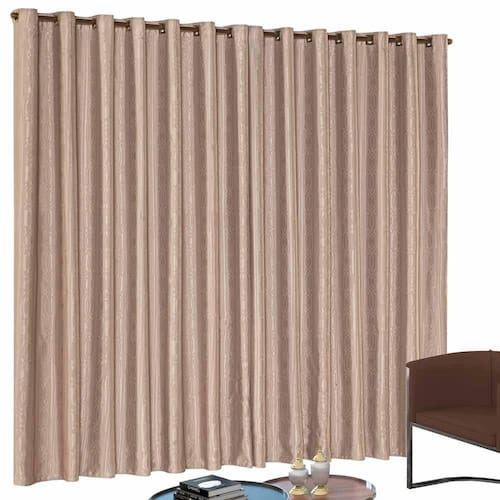 Características: Ideal para varão simples de 2m Tecido não é liso, possui detalhes estampado tom sobre tom Por ser tecido grosso, pode ser usada como semi-blackout Não acompanha varão Detalhe de acabamento em ilhós Medida total de 3,00m de largura esticada Cortina dividida 2 partes, ou seja, pode ser aberta ao meio Cada parte da cortina possui 1,50m esticada