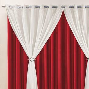 Cortina Jéssica 3 Metros Vermelha Tecido Microfibra Com Voal Clássica Cromada