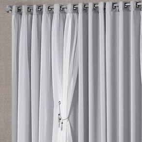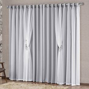Cortina Mabelle 3,00M X 2,50M Semi Blackout Com Voal Premium Pingentes Sala Quarto - Cinza