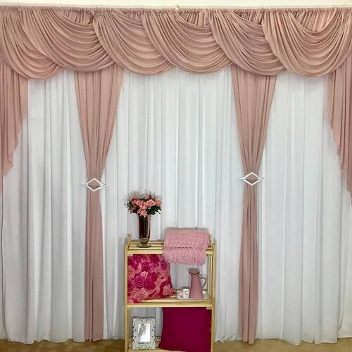 Cortina Mara Para Varão Duplo Malha Gel Sala Quarto 4,00M X 2,60M - Rosê E Branco