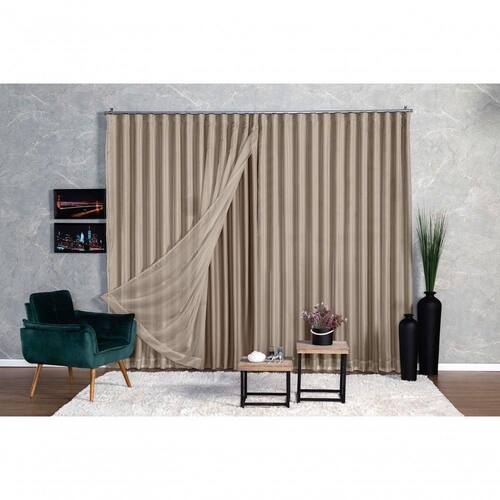 Cortina Microfibra Com Voil 4,00x2,30 Para Trilho Suíço avelã