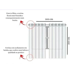 Cortina contém total de 16 ilhós ( 8 ilhós em cada folha )