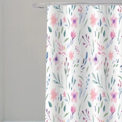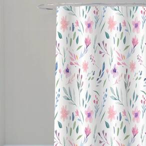 Cortina Para Box Banheiro Antimofo Poliéster 198x180cm Floral Aquarela -