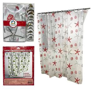 Cortina para box banheiro com ganchos 100% poliester 180cm