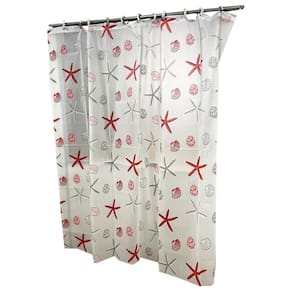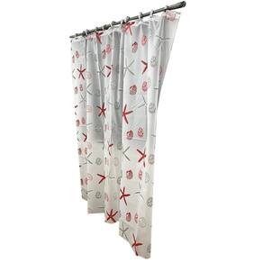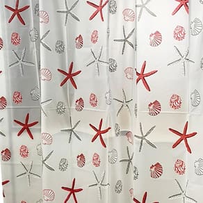 Cortina Para Box Banheiro Com Ganchos 100% Poliester 180Cm - Vermelho