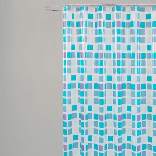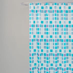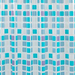 Cortina Para Box Banheiro PVC Antimofo 198x180cm Ladrilho Azul e Branco -