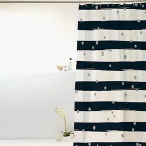 Cortina Para Box Banheiro PVC Antimofo 198x180cm Listra Preta Póa -