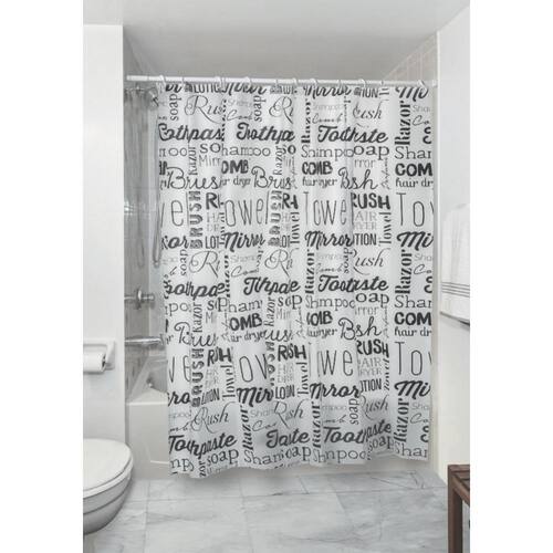 Cortina plástica de PEVA, com fixação do tipo argola e 1,80x1,80m. Material impermeável e resistente ao bolor, ideal para box ou banheira. Produto com espessura de 0,04mm e 12 ganchos, muito fácil de instalar. Lavagem deve ser feita à mão, sem abrasivos. Não alvejar.