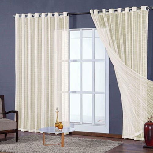 Com acabamento refinado toda em bainha,e com ilhós quadrados cromado, a cortina voal xadrez em tecido vem ganhando espaço por ser bem suave e bonita.